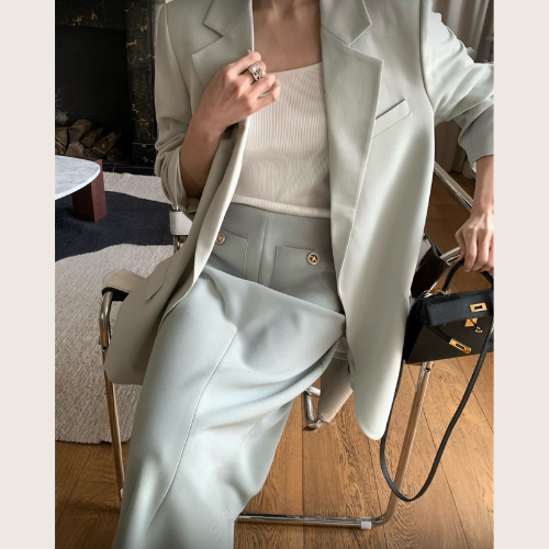 - Structured shoulders for a sharp, tailored line
